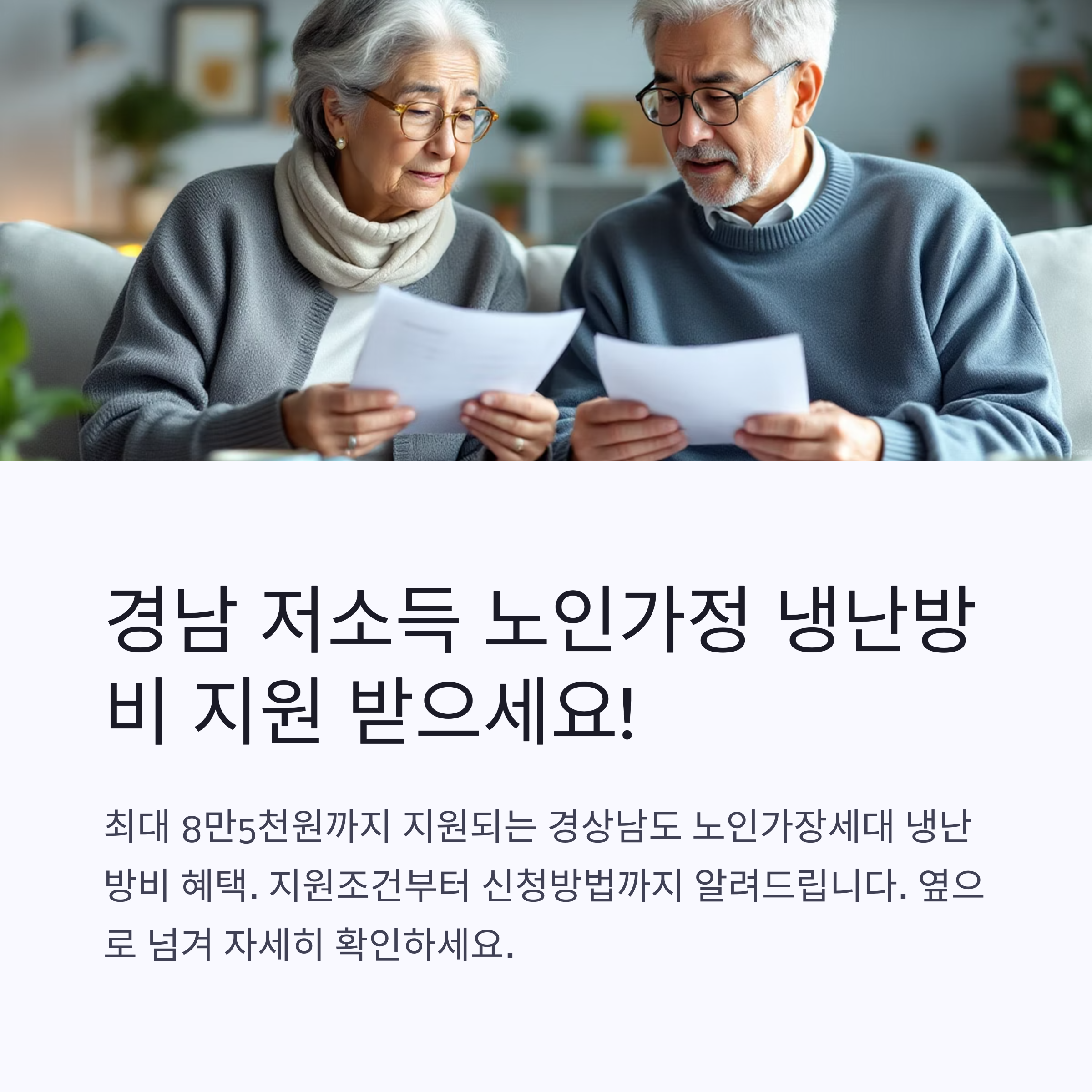 경상남도 저소득 노인가장세대를 위한 냉난방비 지원 제도! 지원 조건, 신청 방법, 시기까지 모두 안내드립니다. 빠르게 냉난방비 지원을 원하시면 아래 버튼에서 확인하세요.