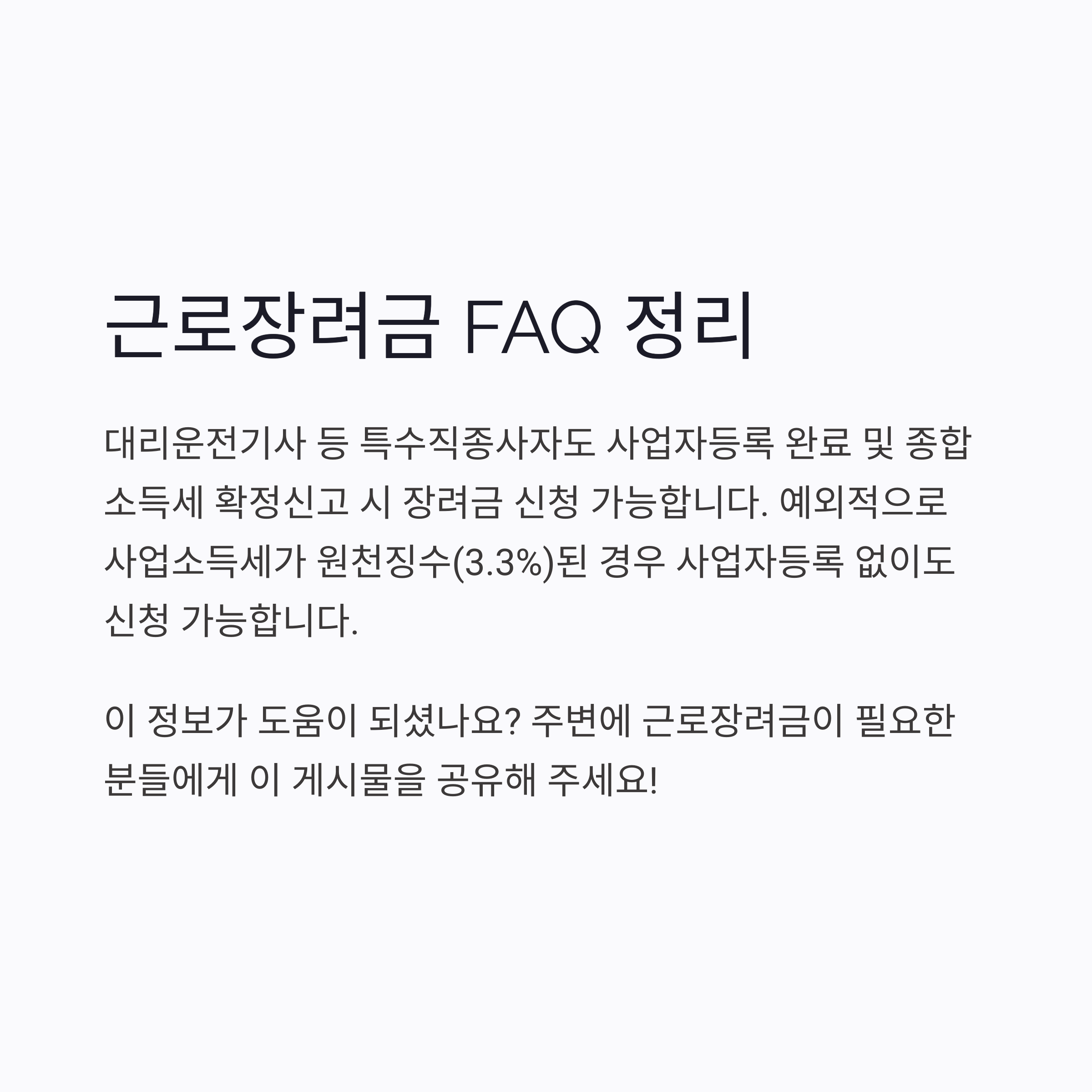 Q15. 대리운전기사로 일하고 있는데 장려금을 신청할 수 있나요?