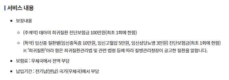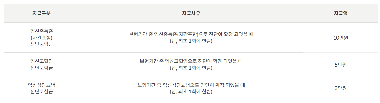 - 특약(엄마): 만 17세~45세 사이의 임신 22주 이내 임신부