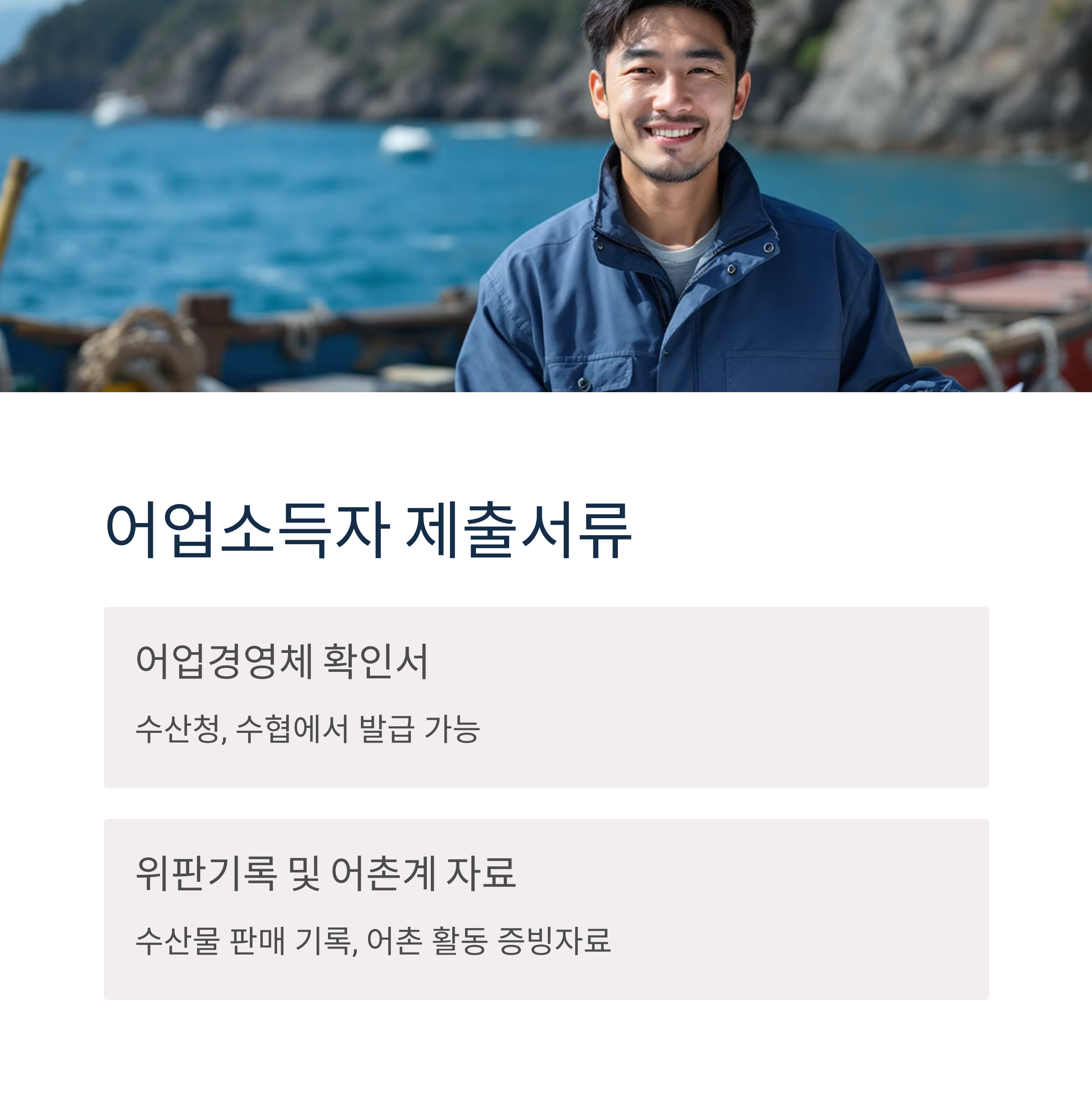 근로소득, 사업소득, 어업소득 등 본인의 소득 유형에 따라 추가 제출서류가 필요합니다.